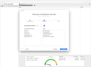 The VirtualCentre VCSA appliance is imported as per standard procedure using the “create / register VM” import wizard. Note the considerable hardware requirements, which will take up a lot of resources on the Mac Mini (2vCPU / 10GB RAM / 300GB disk).